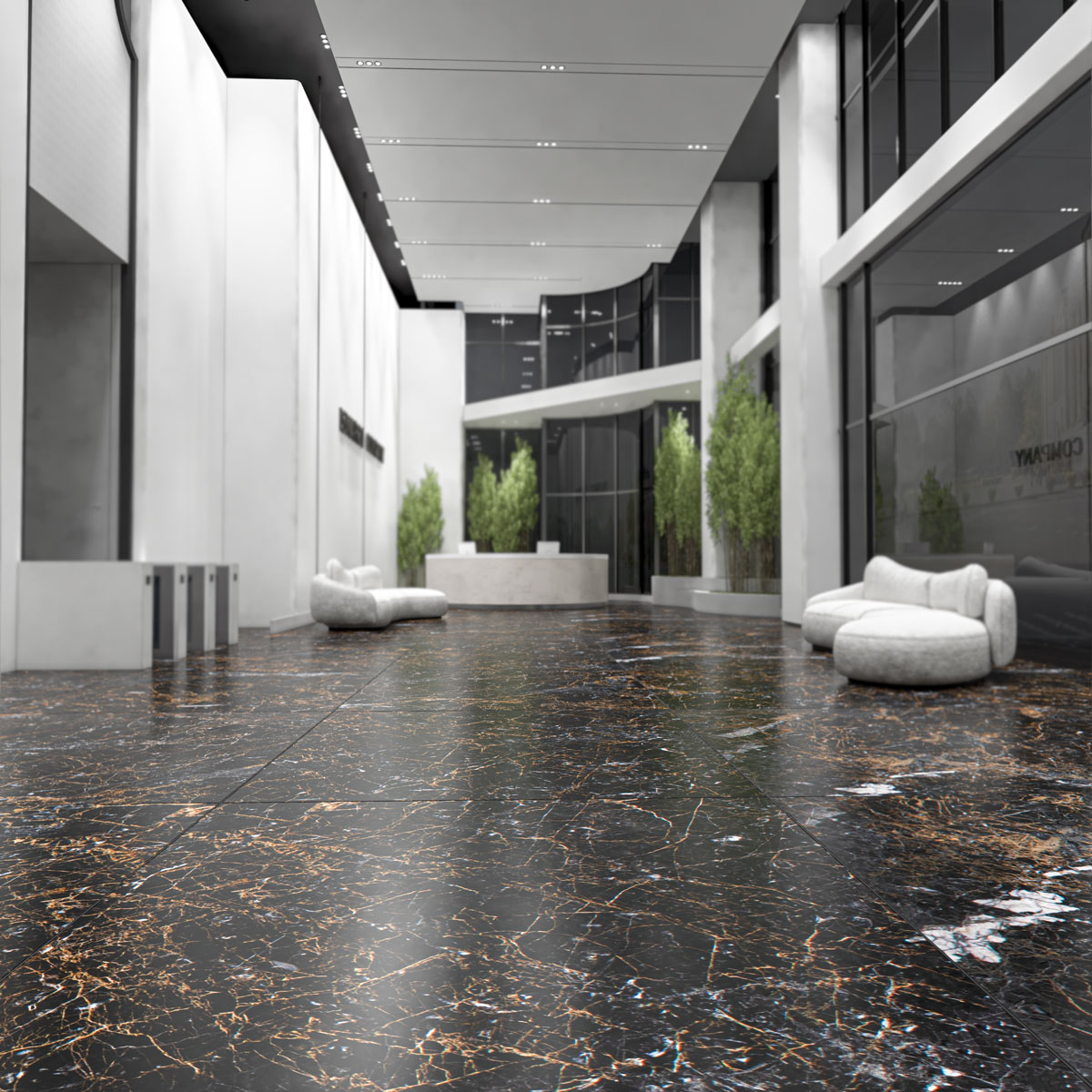 Its dark, velvety tones contrasted by shimmering gold infuse spaces with depth, drama, and unparalleled elegance, transforming interiors into regal sanctuaries. The polished finish and consistent veining make Golden Black Marble exceptional for large-format slab installations including flooring, wall claddings, grand lobbies, and feature walls, where striking contrast and mirror-like gloss are essential.