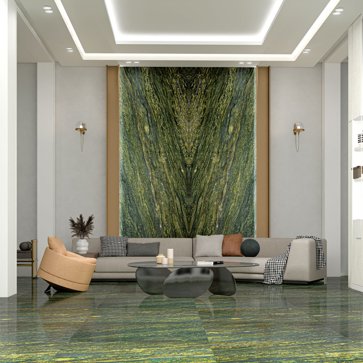 Its rich green tones infuse spaces with vitality and freshness, evoking lush landscapes while delivering contemporary sophistication. The resilient, patterned structure and polished finish make Jungle Green Granite perfect for expansive slab installations in flooring, wall cladding, countertops, and exterior facades (excluding parking areas), ensuring vivid color vibrancy and lustrous durability.