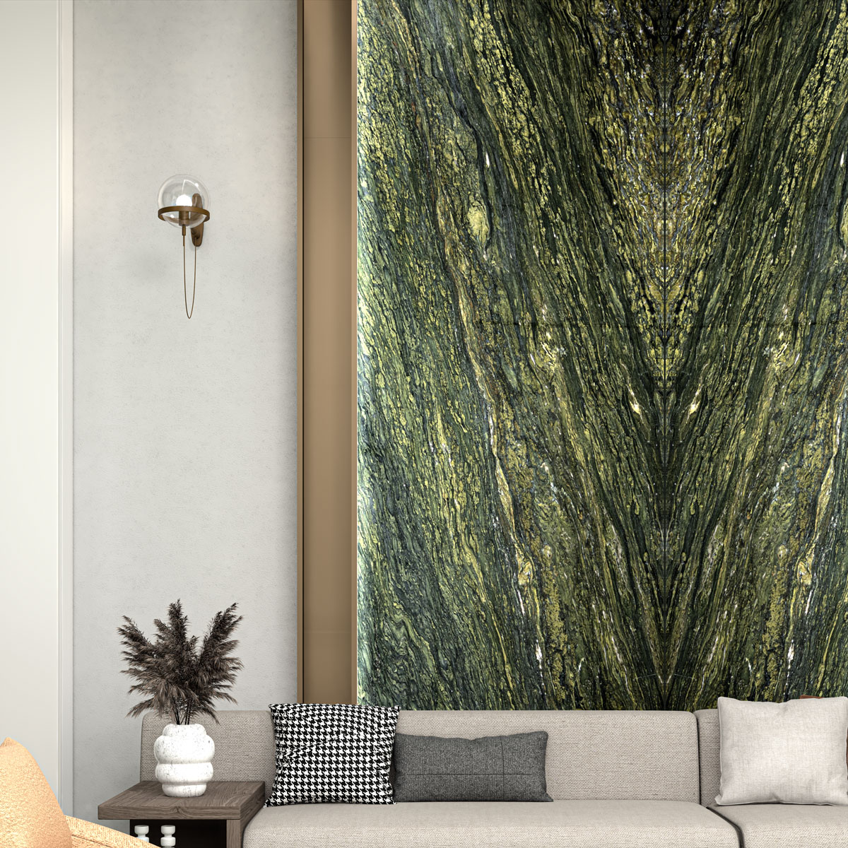Versatile in processing, Jungle Green Granite adapts to tailored dimensions for vanities, stairways, accents, and architectural highlights. It complements woods, metals, and neutrals beautifully, inspiring creators to craft adventurous, nature-infused compositions.