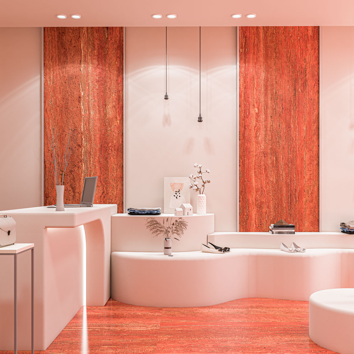 In addition to its visual appeal, Red Travertine is highly versatile in fabrication. It can be processed into custom sizes for countertops, vanity tops, staircases, wall panels, and various decorative architectural elements. Its warm tones pair beautifully with materials such as wood, metal, glass, and concrete, enabling designers to create balanced and visually engaging spaces.