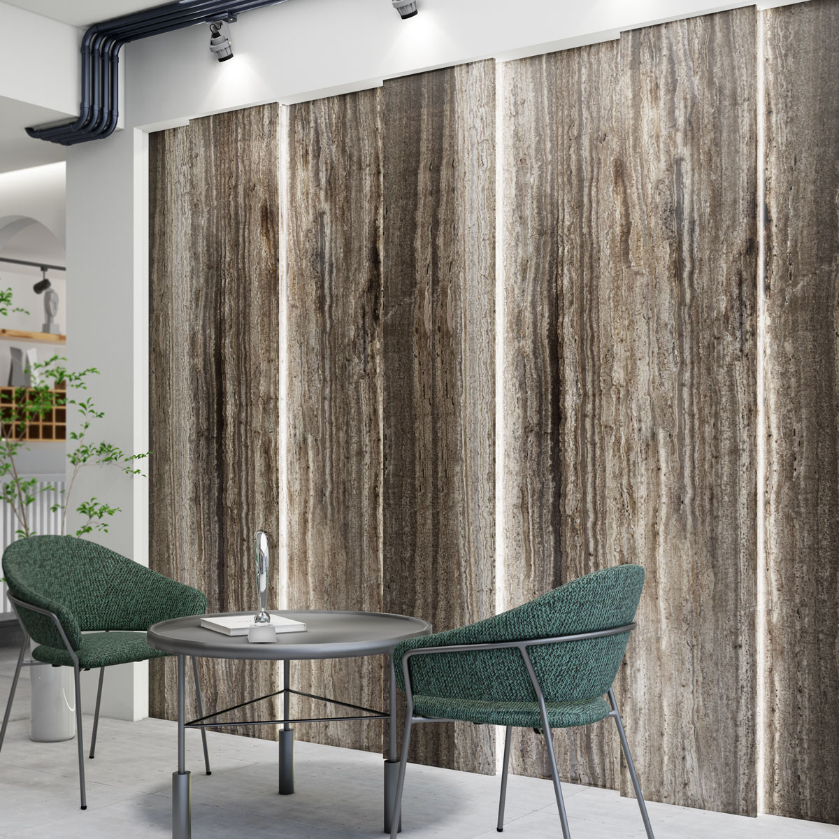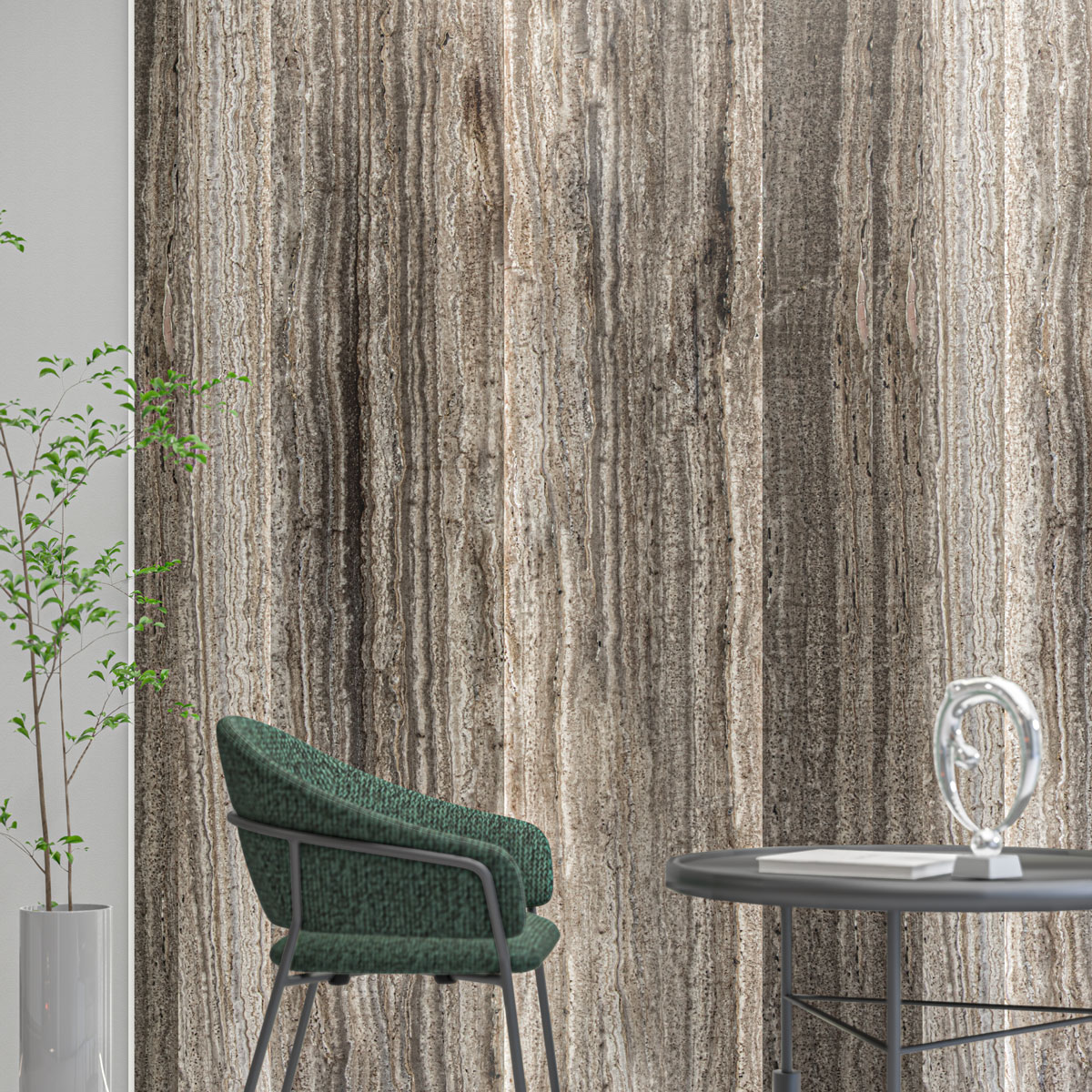Its darker tones introduce a sense of depth and luxury, enhancing the visual contrast within any space. Titanium Travertine’s refined, consistent structure makes it ideal for large‑format slab applications such as feature walls, high‑end flooring, exterior façades, lobby designs, and modern statement surfaces where uniformity in pattern and tone is valued.