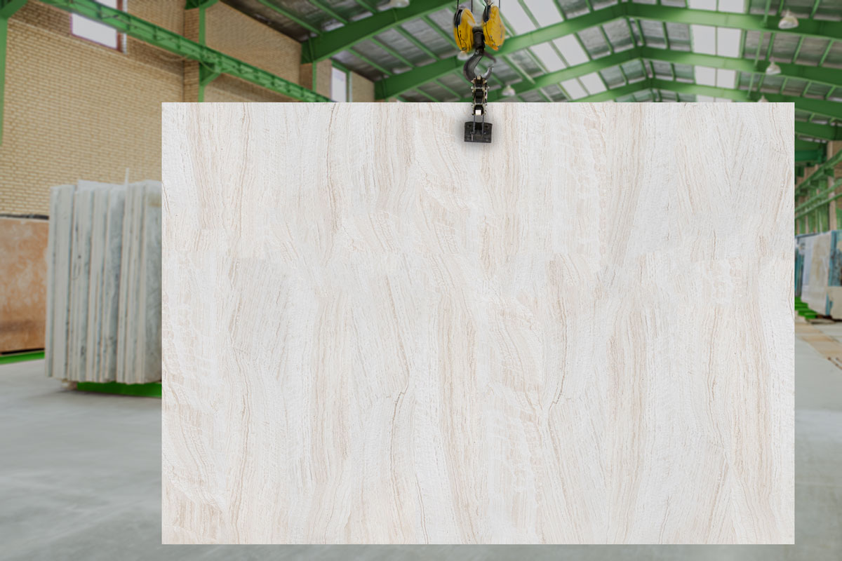 Its light tones naturally enhance brightness in any space, helping interiors appear more open and welcoming. Thanks to its smooth, uniform structure, White Travertine works exceptionally well in large-scale slab applications such as flooring, wall cladding, lobby designs, and feature walls, where consistency in color and pattern is essential.